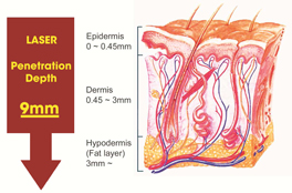 When the laser paddles are placed on the skin, the cold red laser beams penetrate the skin just deep enough to reach the layers of fat. When the light hits the fat cells, a rapid chain of events takes place. Firstly, pores form on the cells causing them to spill out. The water, Glycerol and fatty acids move into the interstitial space beneath the fatty layer in the skin. Then more water, fatty acids and Glycerol spill out. The adipocyte cells are therefore reduced in size.